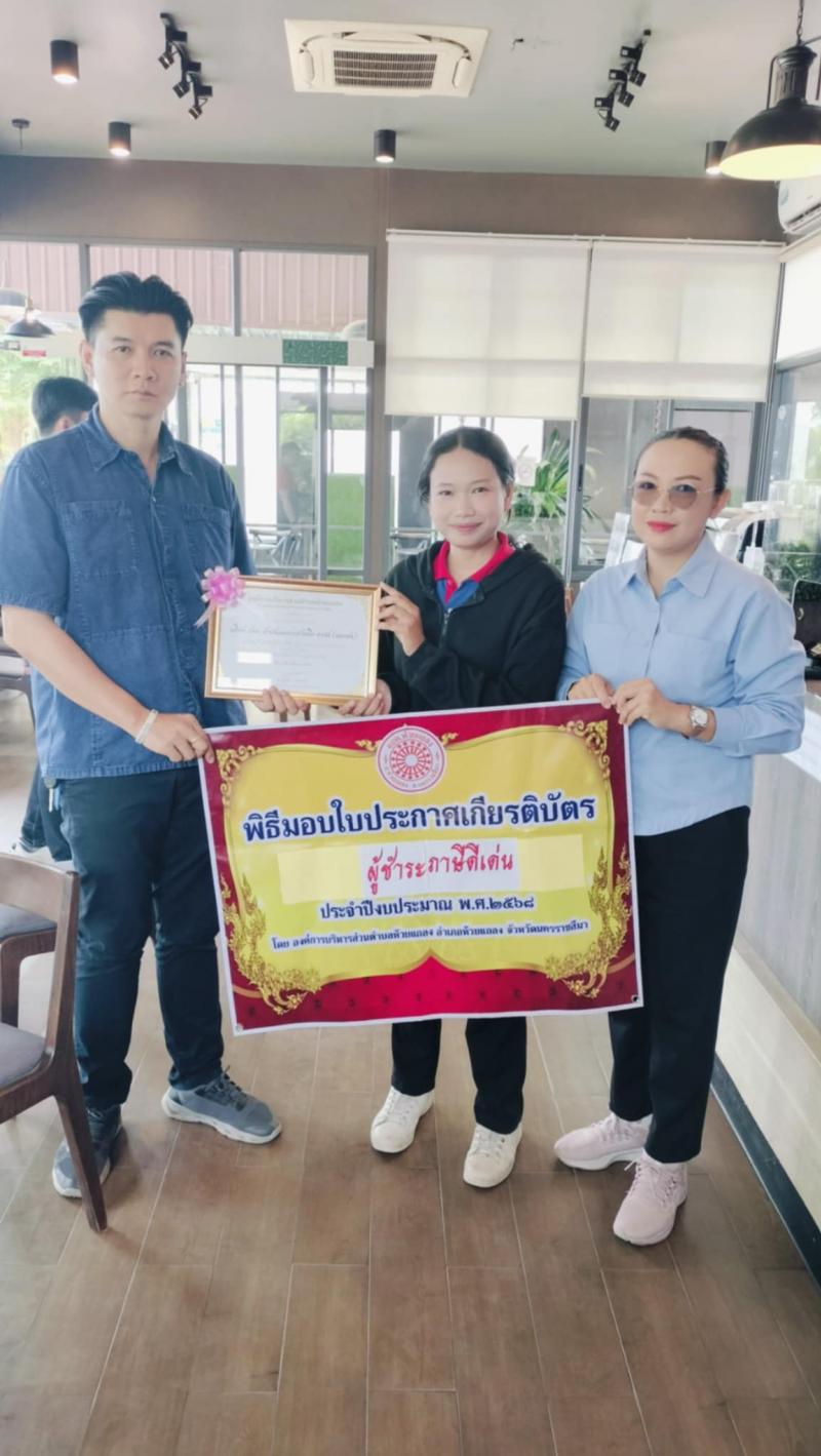 วันที่ 5 สิงหาคม 2568 นายสุพร แดงงาม นายกองค์การบริาหารส่วนตำบลห้วยแถลง ได้มอบหมายให้ นายสมชาย บุญเจริญชัย รองปลัดองค์การบริหารส่วนตำบลห้วยแถลง มอบใบประกาศเกียรติบัตร แก่ผู้ชำระภาษีดีเด่น ประจำปีภาษี 2568 เพื่อเชิดชูเกียรติ และเป็นแบบอย่างที่ดีในการทำหน้าที่ของตนเอง